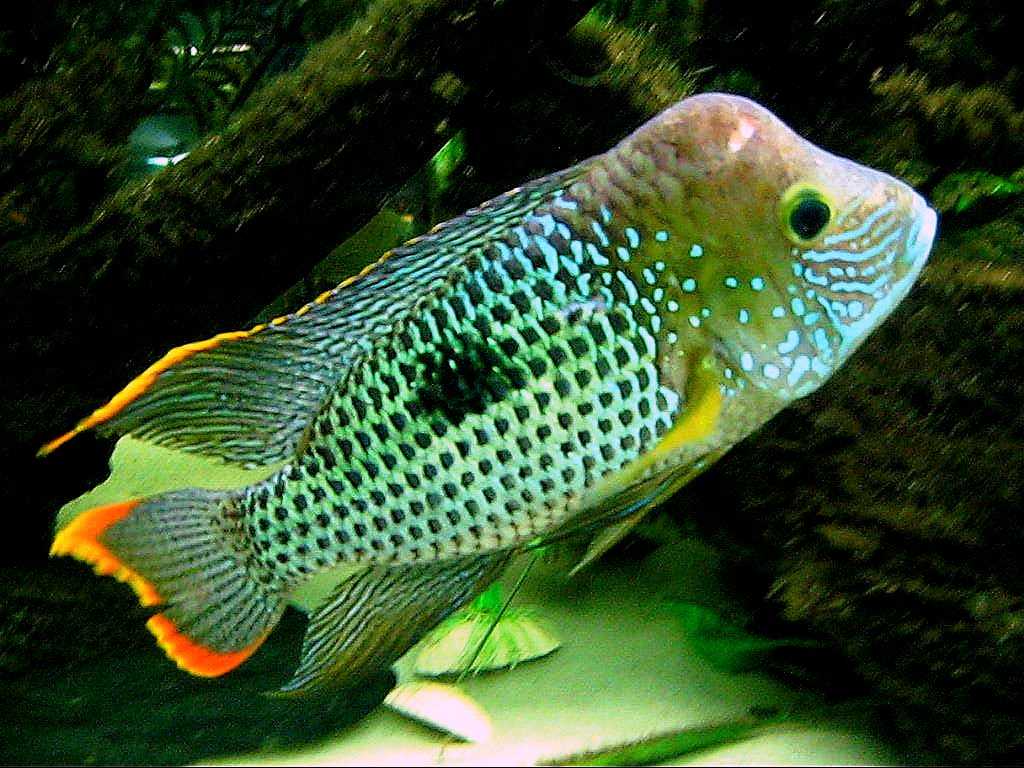 Бирюзовые акары имеют довольно мрачную репутацию среди аквариумных рыбок — 80 процентов по общепринятой шкале агрессии! Но это совсем не мешает им быть очень любознательными и умными: они распознают человеческие лица и даже не прочь поиграть с хозяином.