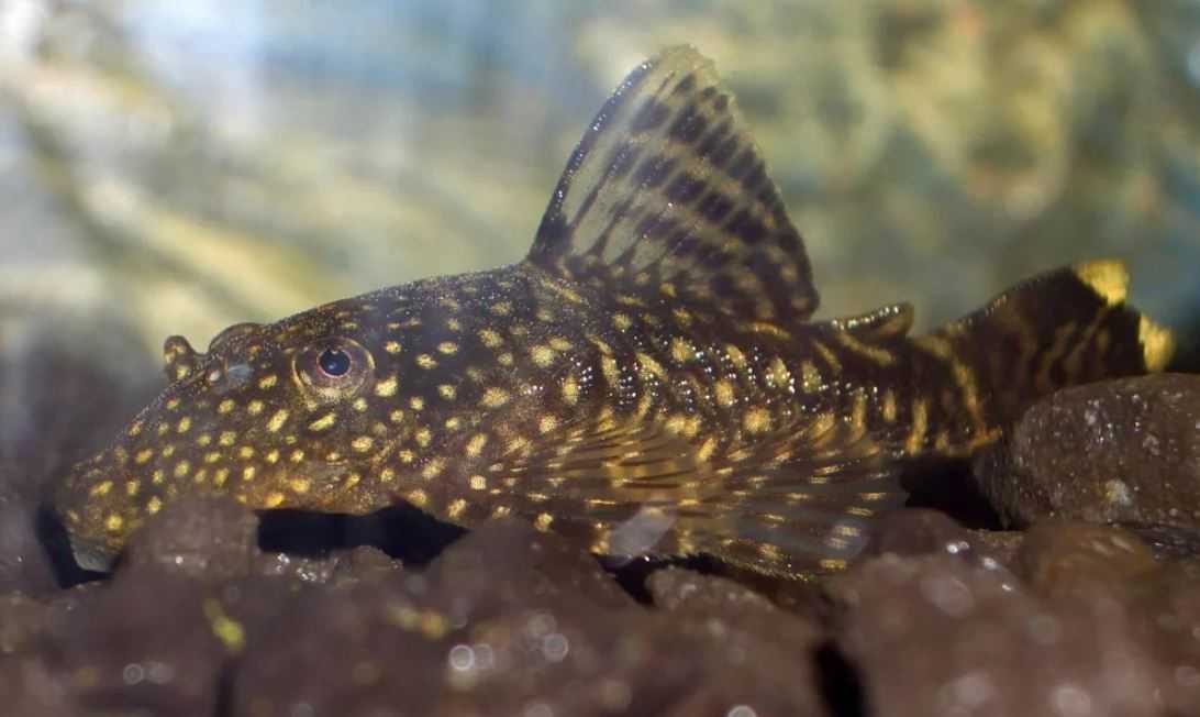 - Анциструс обыкновенный — самая распространенная в аквариумах разновидность с темным телом, по которому разбросаны небольшие светлые крапины.