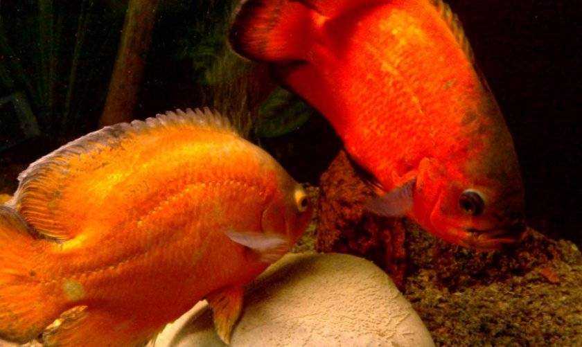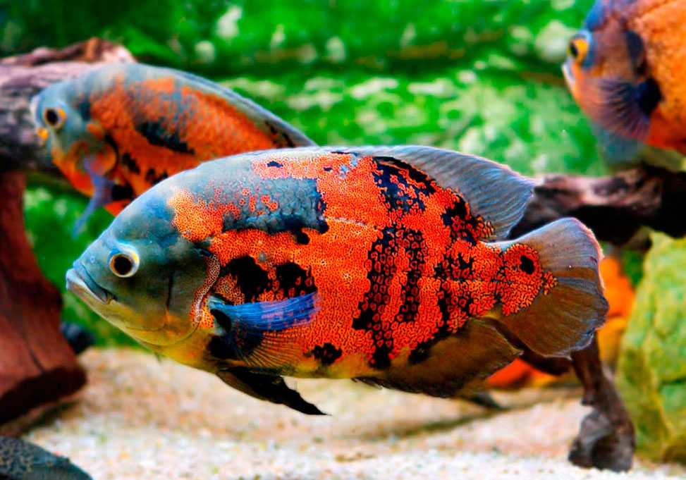 Но в целом, цихлиды-оскары достаточно медлительные и спокойные рыбы, и к тому же немного пугливые. Погруженный в воду сачок может заставить их заплыть в угол аквариума и даже повернуться на бок