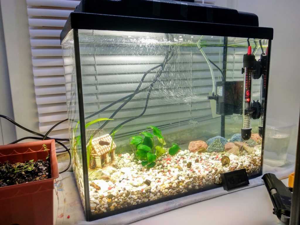д.) водопроводной водой и осторожно поместите в аквариум.