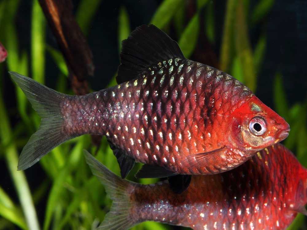 Аквариум для такой стаи должен быть достаточно просторный, длиной от 70 см и объемом от 100 литров. Большую часть времени черные барбусы проводят в середине воды и в отличие от суматранского барбуса, черный не так агрессивен и не обрывает плавники.