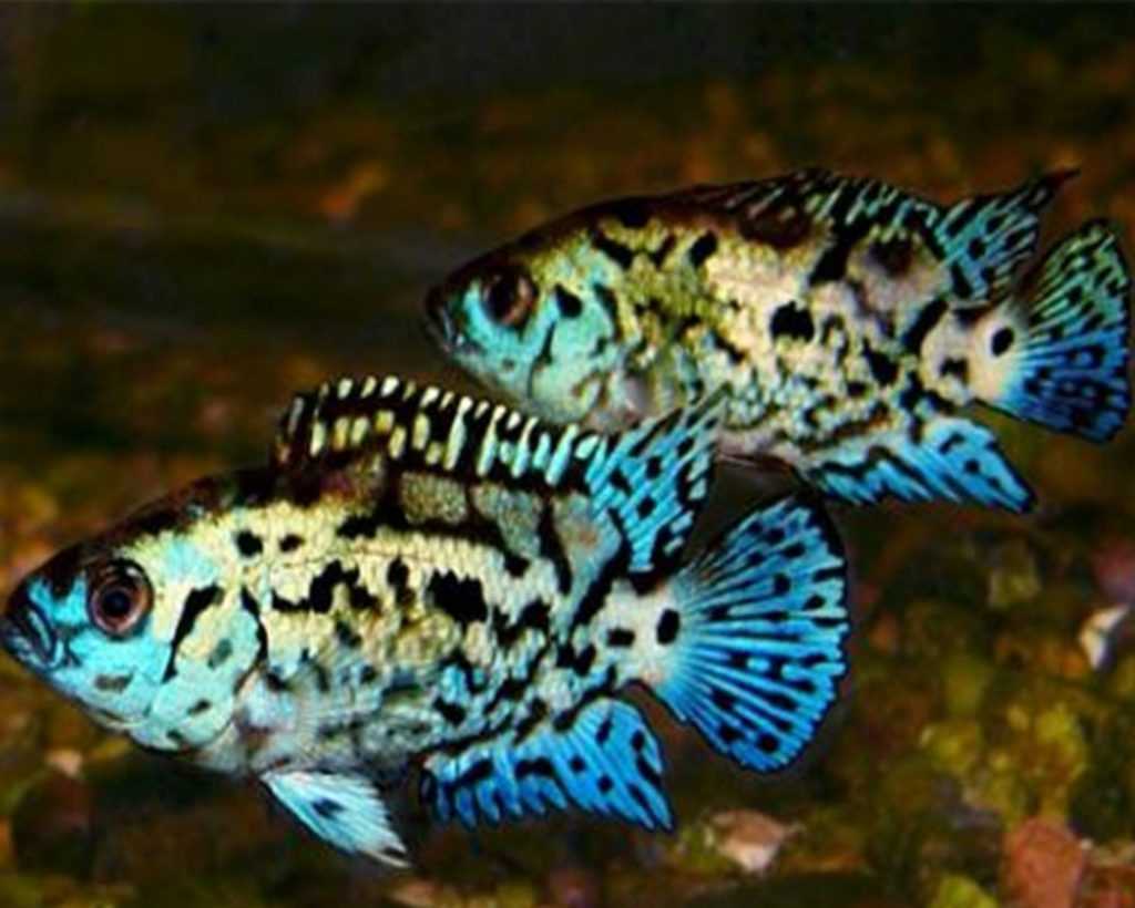 Размер Electric Blue Jack Dempsey cichlid довольно крупный, тело плотное, высокое и немного вытянутое в длину.
