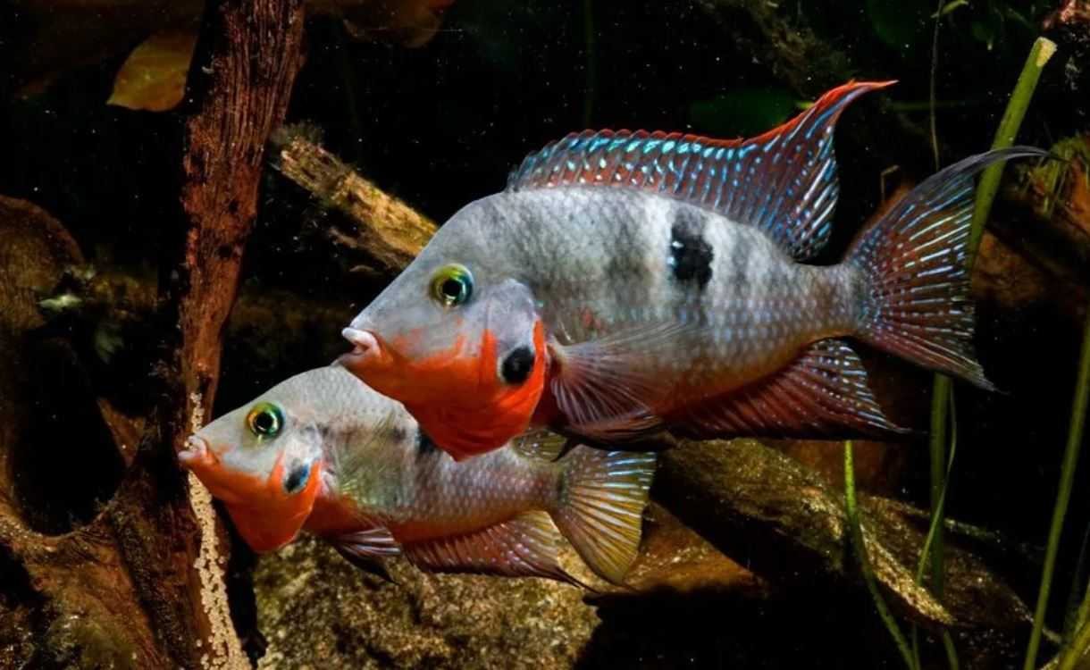 Красногорлые предпочитают жить парами. Даже если в аквариуме присутствуют достойные представители других рыб, пара обособляется от них и не вступает с ними в контакт, пока не наступит период нереста и им все будут мешать.