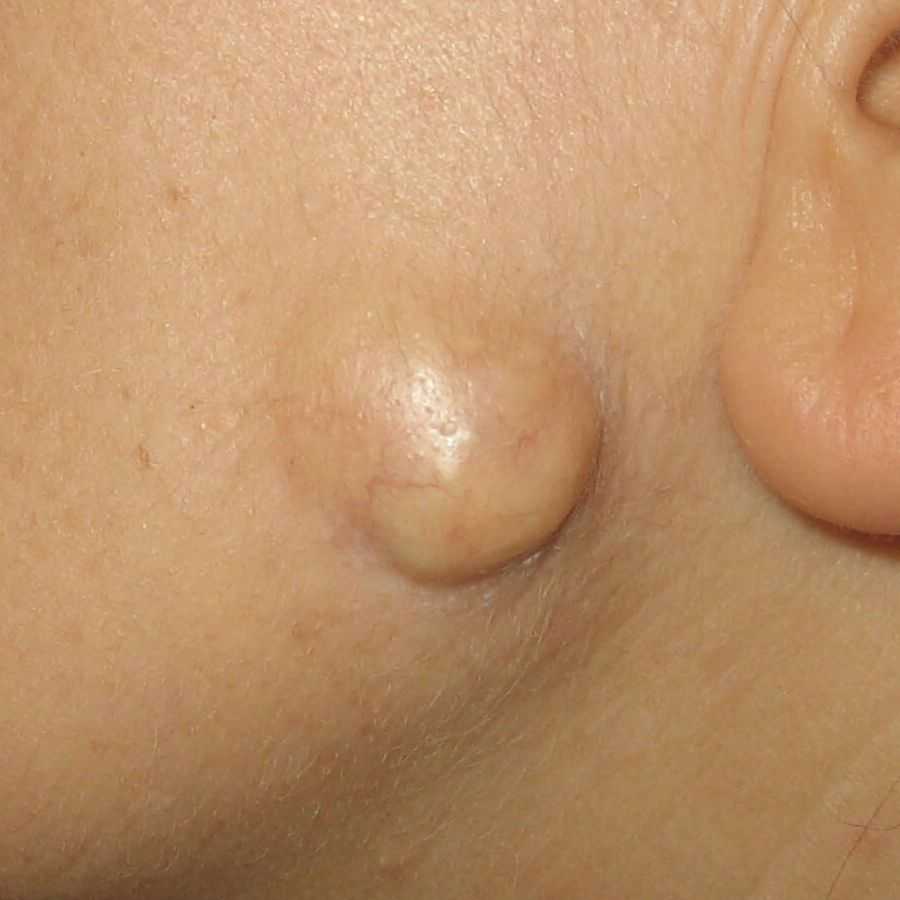 Это киста, возникающая из-за закупорки выводного протока сальной железы. Внешне она выглядит как подкожный нарост, возвышающийся над кожей. Располагается в местах, где имеется большое количество сальных желез: лицо, шея, кожа головы, спина, половые органы.