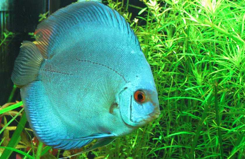 Дискусы — мирные и пугливые рыбки. Чтобы им было комфортно, украсьте аквариум корягами, посадите растения способные выдержать высокую температуру. В качестве растений подойдет нимфея тигровая, эхинодорус, амбулия, лимонник, валлиснерия.
