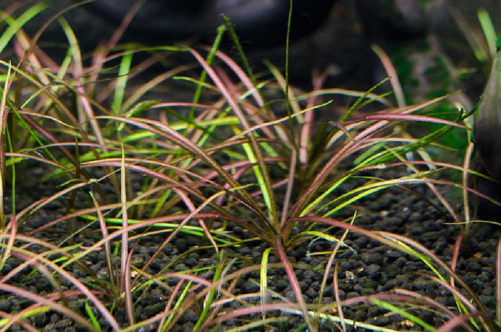 Кустики, имеющие высоту до 10-12 см и ширину листьев до 5 мм. Из одной розетки может выходить от пяти до 20 нежных узких и длинных ланцетовидных листочков. Они острые кнаружи и зауженные к основанию. Выглядят нежными и ранимыми, особенно при создании в аквариуме искусственных водных течений.