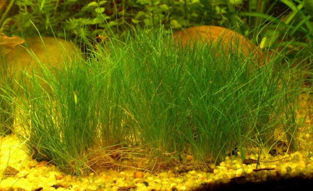 Элеохарис любит аквариумы с чистой водой.