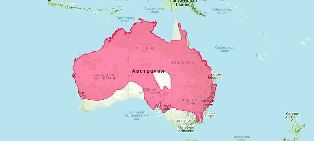 По всей Австралии, даже в суровой центральной части страны. Отсутствуют на Тасмании.