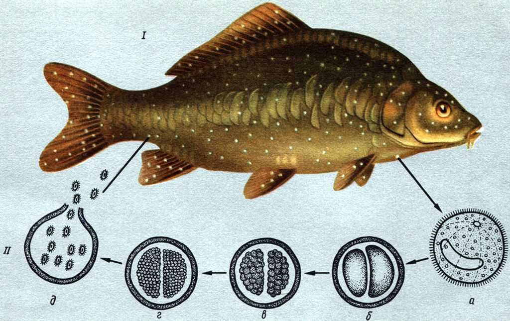 Инфузория плодится неравномерно, постепенно покидает рыбку-хозяина и плавает в воде. Зараженная рыбка начинает задыхаться, теряет аппетит, худеет и умирает.