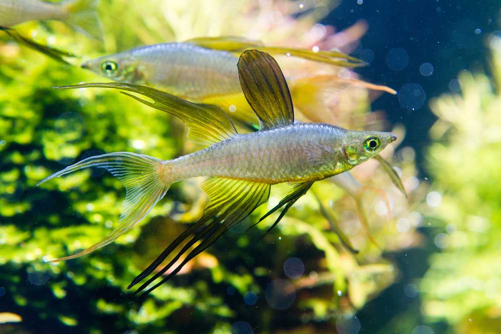 Лучший вариант – видовой аквариум. Iriatherina werneri – это маленькие, робкие, осторожные создания, поэтому им сложнее конкурировать за корм с более проворными соседями.