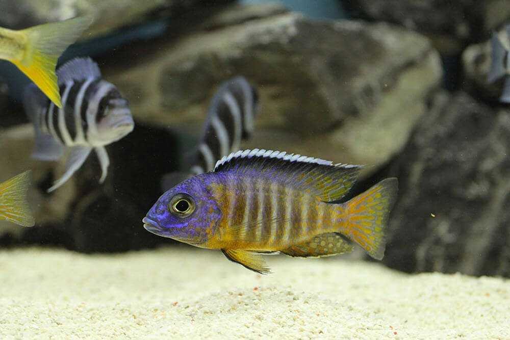 В аквариуме для них создают условия подобные природным – песчаное дно и много укрытий из камней. Для пары аулонокар необходим аквариум объемом 150 л. Рыбки относительно спокойные, но в период нереста становятся агрессивными.