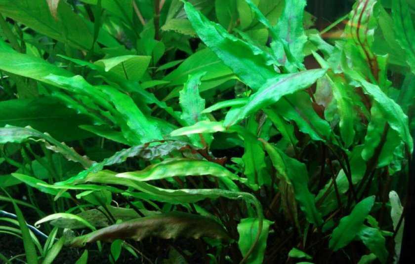 Волнистая, или ундулата. Рекомендуется для начинающих, пользуется популярностью у опытных аквариумистов. Несложна в уходе и относительно нетребовательна к условиям содержания. Окраска изменчива: встречаются формы и с зелеными, и с коричневыми или оливковыми листьями. Особенно красива К. волнистая красная. Такие растения часто высаживают группами на среднем плане, на фоне зеленых зарослей других гидрофитов.
