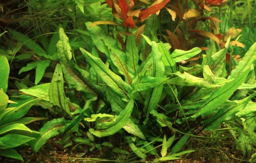 - Апоногенолистную необходимо сажать в большие ёмкости. Огромные светло-зеленые листья смотрятся шикарно в центральной части аквариума.