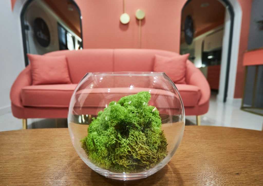 Оптимальный вариант, который будет отменно смотреться в любом интерьере – мини-травник. В аквариум можно посадить небольшие растения. Подойдет шарообразная кладофора. Она не только привлекательно выглядит, но и выполняет функцию натурального фильтра, поглощает множество вредных веществ.