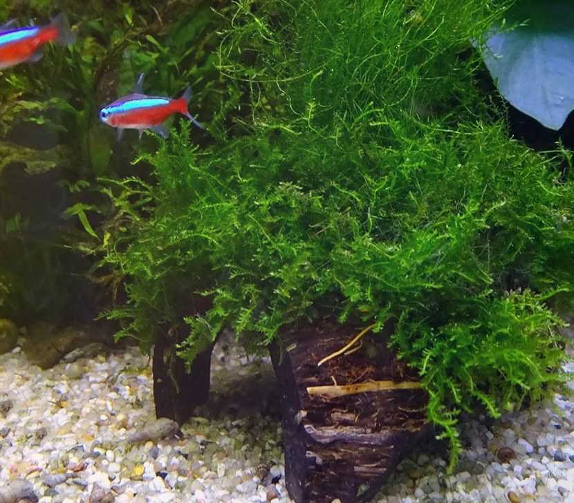 Для того чтобы вырастить яванский мох, вам не понадобится грунт. Он может укореняться и на крупных камнях, и на древесных корягах, и даже на пластиковых шлангах и трубках фильтра. Самое сложное время для растения, когда мох начинает укореняться – в этот период ему требуется больше света.