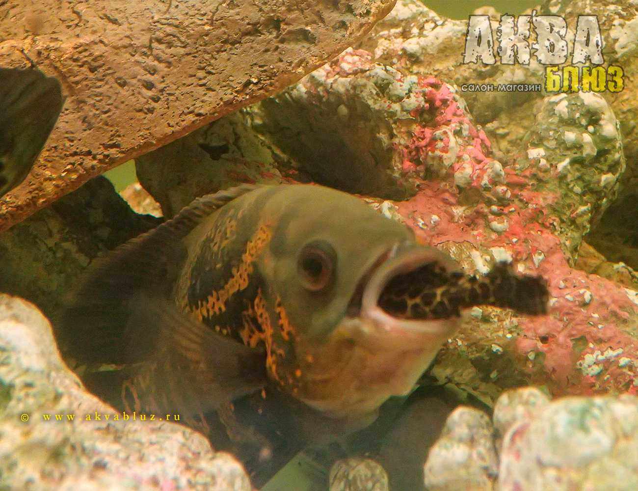 Надеяться на лучший исход и ждать, когда хищная рыба (в нашем случае Астронотус) полностью самостоятельно заглотит жертву. Цихловые имеют интересное строение ротовой полости — своими верхнечелюстными зубами они захватывают пищу, а затем дополнительно обрабатывают ее зубами, расположенными на нижней глоточной кости (глоточными зубами), дробя и перемалывая жертву на более мелкие кусочки.