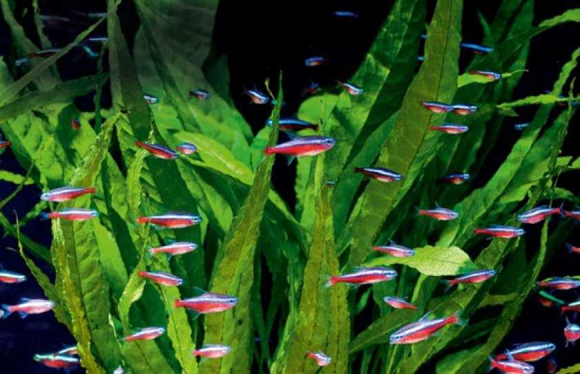 - К растениям неоны относятся спокойно, но иногда могут пощипывать нежные листья некоторых видов растений (анубиас, валлиснерия и яванский мох).