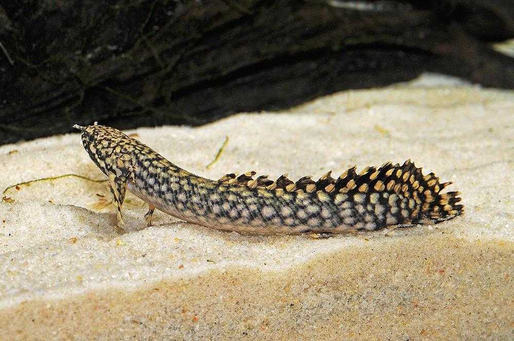 - На плавнике небольшая полоса из гребней, а тучные грудники служат основным инструментов при передвижении.