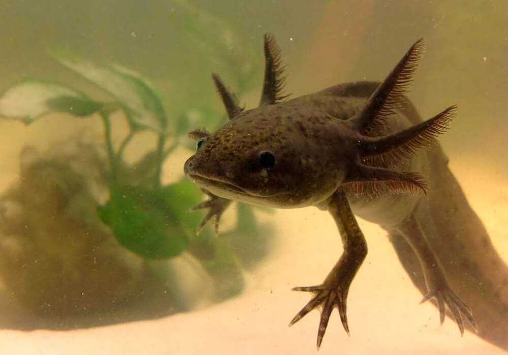 При наличии внутренних легких и внешних жабр, она дышит одинаково хорошо на суше и под водой. Поэтому аквариум можно наполнять не полностью и обставить декоративными предметами, чтобы личинки могли выходить на поверхность.