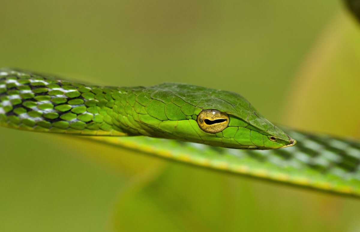 Содержать плетевидку дома не так просто.Она привыкла к тропическому климату и к тому же может напугаться человека. Понадобится достаточно большой террариум вертикального типа, его минимальные параметры 120*60*100 см.