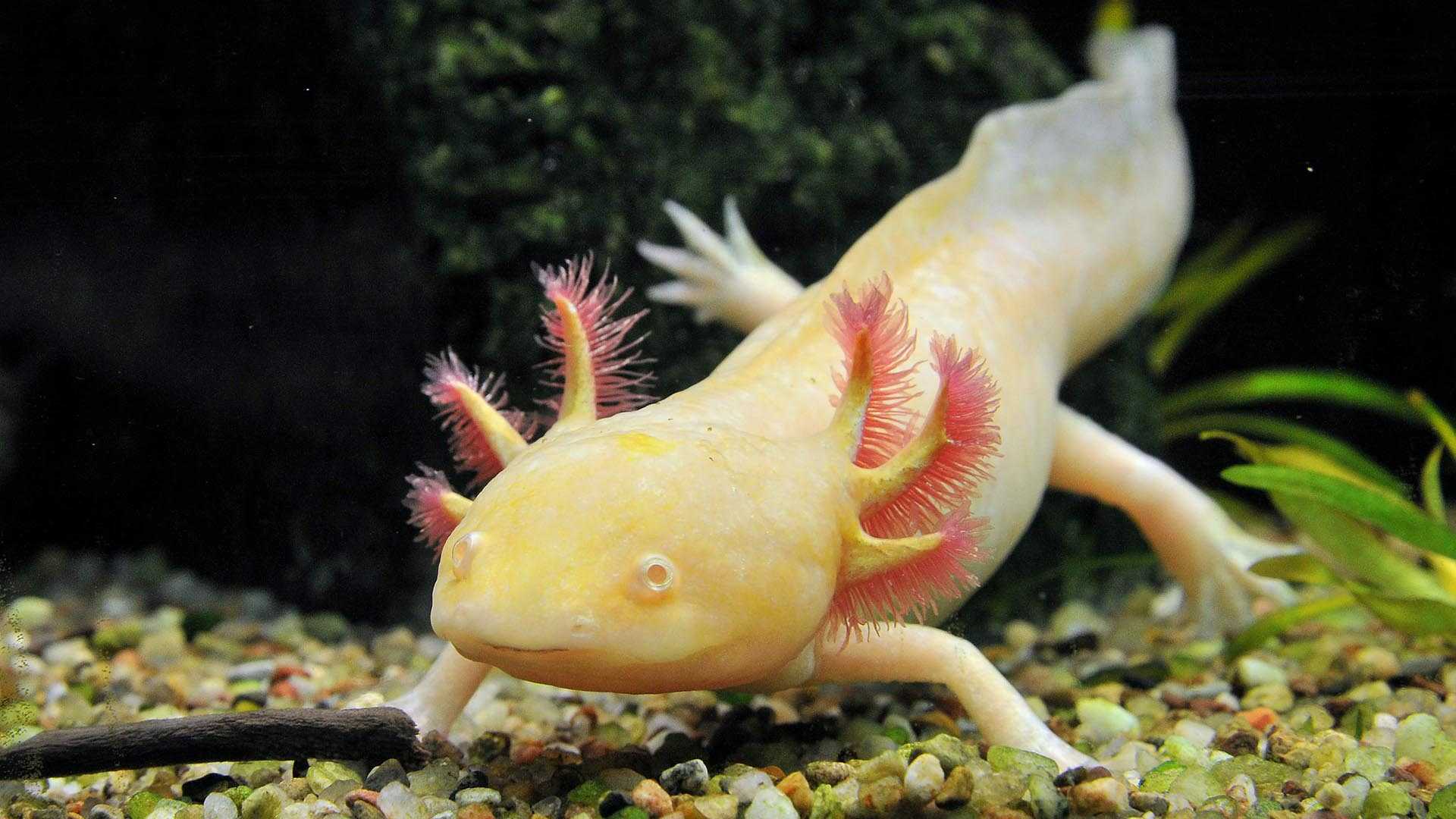 Отдельного внимания стоят аксолотли альбиносы, чья кожа сохраняет чистый белый цвет без узоров и пятен, но жабры на голове и глаза имеют ярко-красный оттенок.