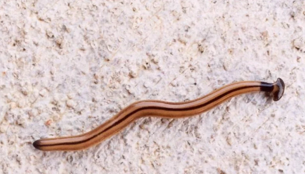 Нередко обитателями домашней экосистемы становятся плоские черви – планарии. Они имеют уплощенное листовидное тело длиной от 2 до 10 мм с парой глаз и мелкими ресничками по всей поверхности туловища. В зависимости от вида цвет планарии варьируется от молочного до коричневого. Черви медленно скользят по стеклу, камням, листьям водных растений.
