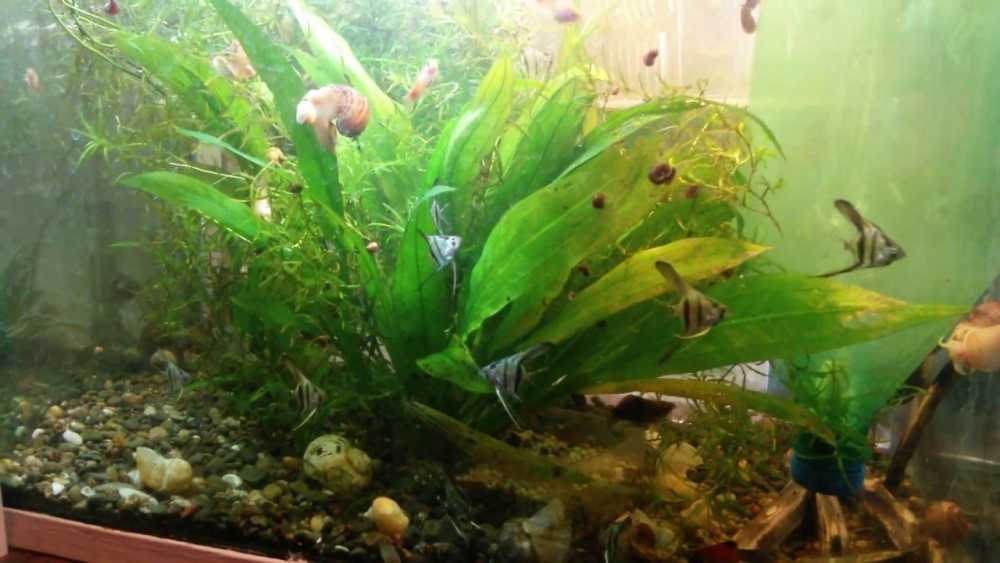 - наличие в аквариуме растений с широкими листьями типа эхинодоруса (Echinodorus aschersonianus, Echinodorus horizontalis) или криптокорины (Cryptocoryne lutea, Cryptocoryne affinis). Листья растений чаще всего используются скаляриями для отложения икры.