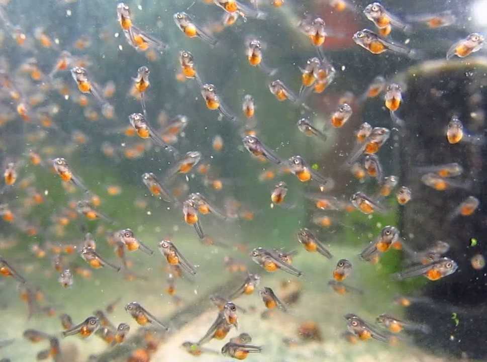 Чтобы простимулировать начало икрометания, нужно повысить температуру воды выше +24°С. При этом самцы начинают быстро плавать по нерестовику, гоняя самок, мечущих икру, по всей территории. Она оседает на растениях, песке, и самцы ее сразу оплодотворяют. За время нереста самка способна выметать до 10 тыс. икринок. После окончания процедуры всех участников надо отсадить в другие аквариумы.