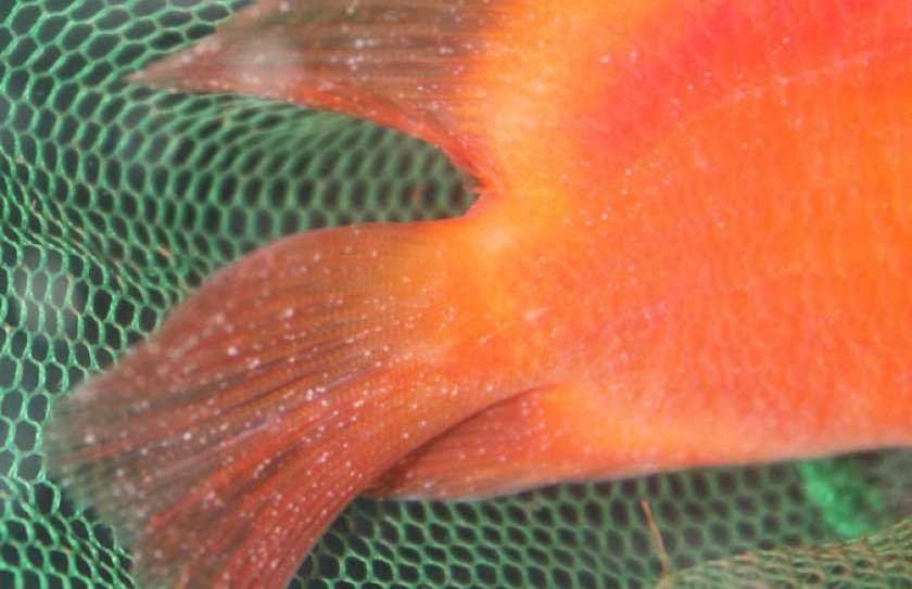 Рыба, поедаемая изнутри и снаружи паразитами, становится тревожной, у неё пропадает аппетит, она часто выплывает наверх подышать, чешется.