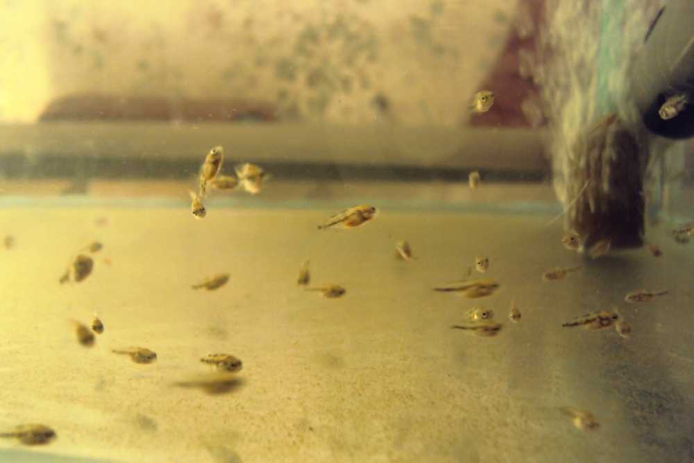 Стоит также обратить внимание на их цвет: икринки белого цвета – не оплодотворенные, и их нужно устранить из аквариума. Поскольку в искусственных условиях нет сезонного размножения, то появление потомства может быть каждый месяц. На 3-5 сутки на свет появляются мальки