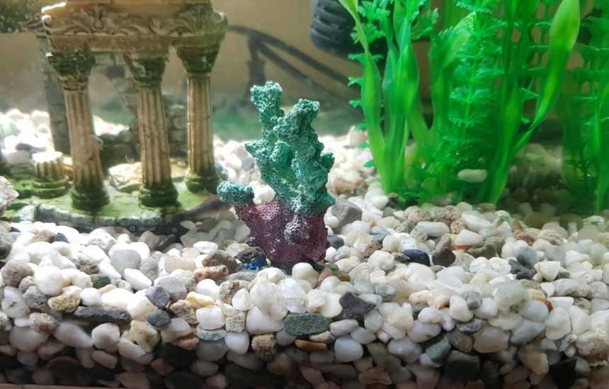 - Используйте цветной грунт и пластмассовые растения. Такой декор долгое время будет выделять в воду вредные вещества.