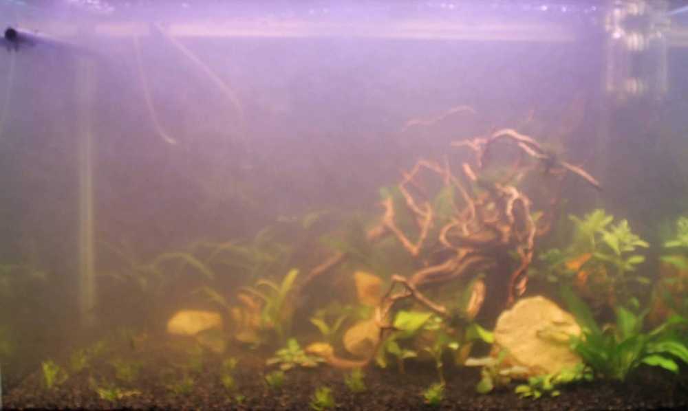 Прозрачная «бактериальная» взвесь в новом аквариуме может свидетельствовать о правильности протекания процессов размножения полезных бактерий. Пока их численность не станет достаточной, вода будет мутной, но проходит это, чаще всего, самостоятельно за несколько недель.