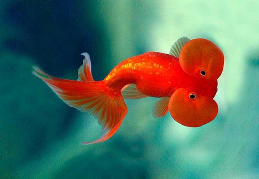 Если смотреть на такую рыбку сбоку, то ничего необычного увидеть не удастся: с такого ракурса она выглядит довольно стандартно для золотой рыбки. Все великолепие открывается, если смотреть на нее сверху.