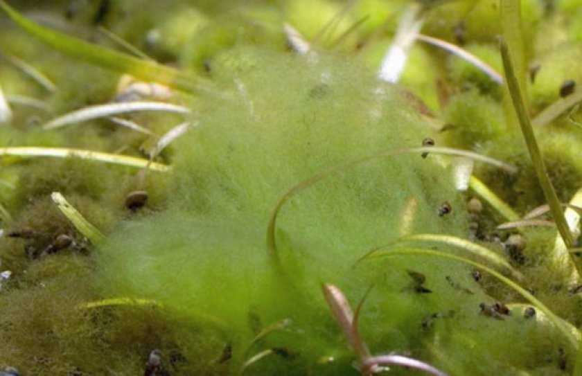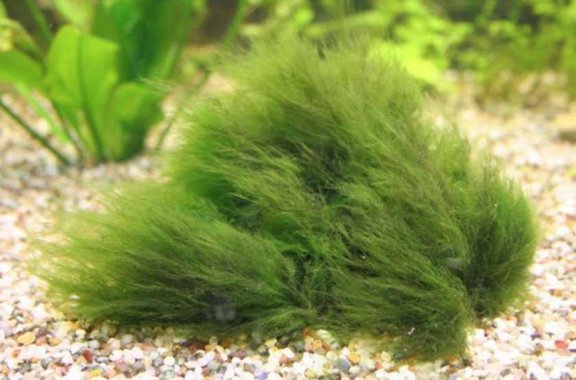 Длинные паутинообразные или же короткие ворсовидные нити ярко-зеленых оттенков способны в кратчайшие сроки заполнить весь «рыбий домик».