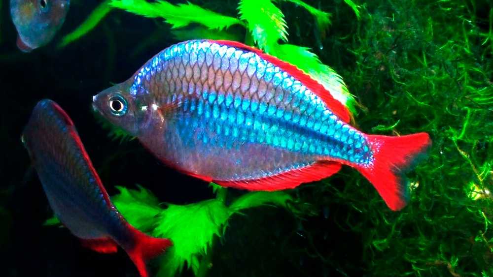 - Адаптация, питание разнообразным живым кормом и едва уловимая солёность воды быстро возвращают радужницам неоновое сверкание.