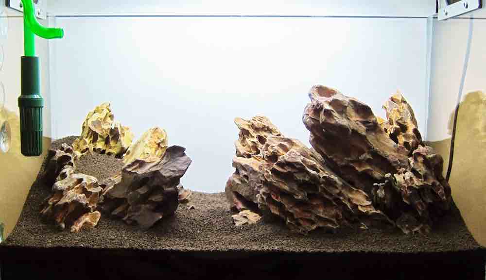 Как и грунт, камни предварительно тщательно отмывают и дезинфицируют. Крайне нежелательны в аквариуме мрамор, известняк, доломит и даже дроблёные ракушки: они повышают рН воды. И, конечно, крупные камни раскладывают подальше от стёкол.