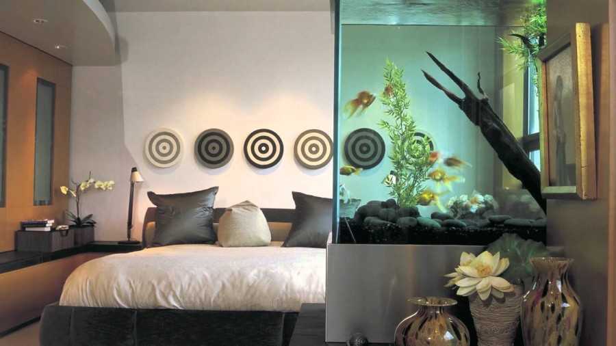 - Шумность. Аквариум в спальне будет создавать шум. Если все же хочется поставить его туда, то стоит выбирать тихое современное оборудование.