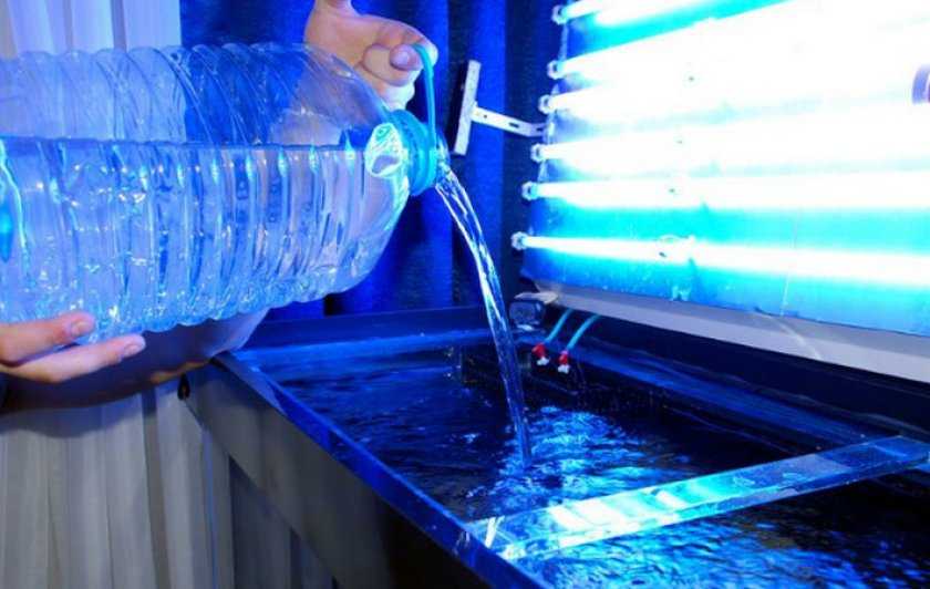 Для подготовки аквариума к процессу эксплуатации необходимо подготовить и влить в него воду. Она должна быть чистой, без взвеси, кусочков грязи, бытовой химии. Она не должна быть дистиллированной, так как живые полезные бактерии необходимы для формирования оптимального микроклимата.