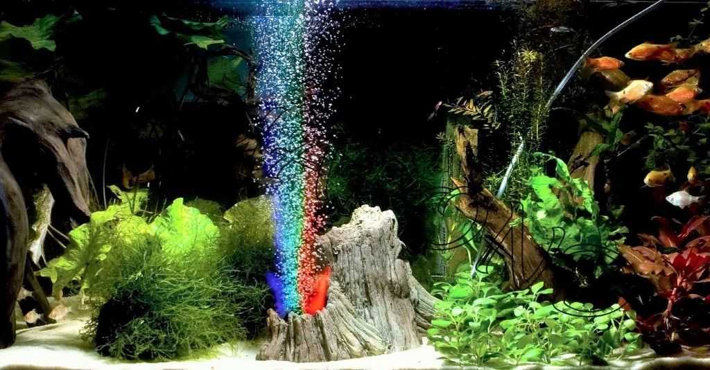 В других случаях с этой задачей может справиться и фильтр. Дополнительной его функцией будет декор: можно подключить к компрессору удлинитель и распылитель, которые будут создавать на задней стенке аквариума пузырьки, что смотрится под лампами очень красиво и эффектно.