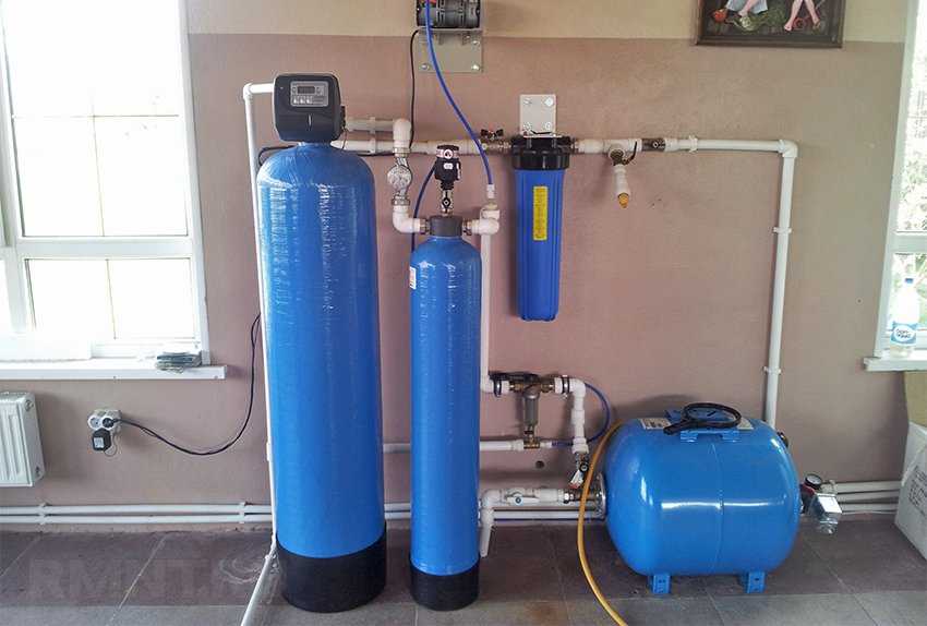 - Специальным фильтром с большим корпусом и размещённой в нём загрузкой, с которой взаимодействует железо, выпадая в осадок;