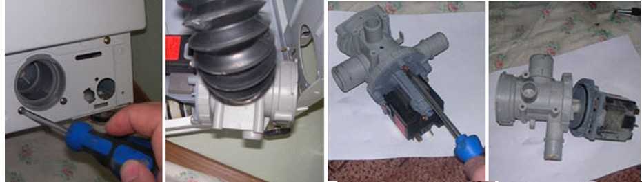 В этом случае придётся для решения возникшей проблемы сначала отсоединить сливной насос. Этот вариант гораздо более сложный, чем другие. Однако он также является более результативным. Имеет смысл это применять в тех ситуациях, когда другим методом решить проблему не удалось.