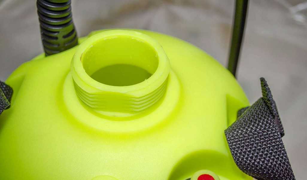 - Шея бака широкая, что облегчает наличие жидкости. Фильтрация позволит вам поймать большие частицы из раствора.