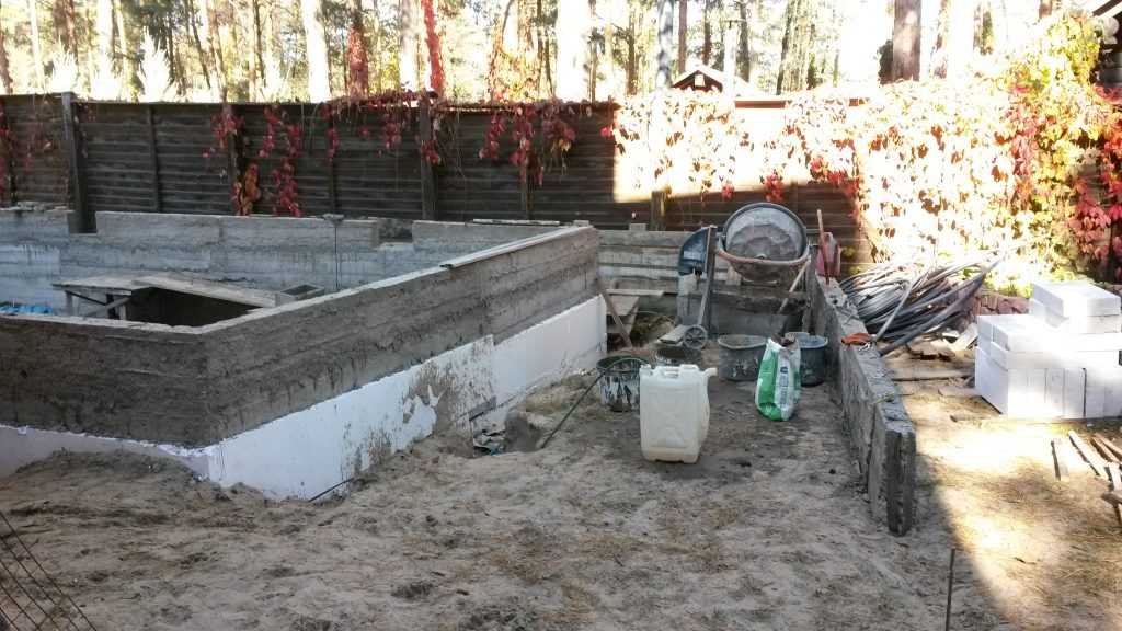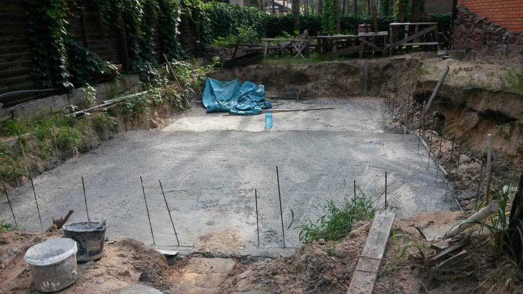 Рассмотрим, как пример, вариант строительства бетонного бассейна на открытом участке.