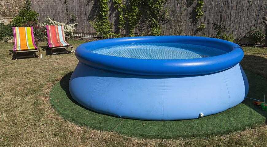 Надувные бассейны наиболее просты в установке. Особая подготовка места для бассейна — не нужна. Однако предварительно необходимо тщательно очистить площадку под бассейн и проследить, чтобы поверхность была ровной, плотной, без уклона, ям или выпуклостей. Дополнительно на землю можно постелить прочную пленку.