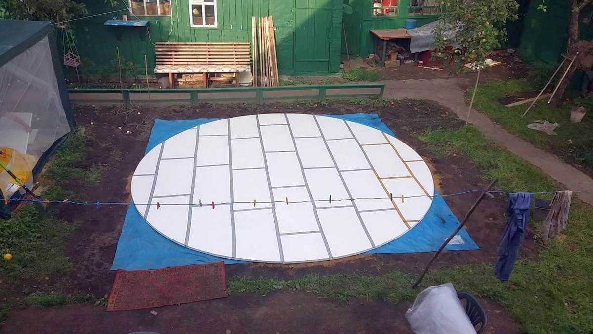 Когда площадка под бассейн определена, разбирают комплект готовой конструкции. Опытный хозяин не торопится сразу ставить систему, проверяет днище – оценивает его целостность. В случае сомнений, наличия дефектов, продукцию возвращают – это проще, чем потом заделывать порезы и проколы. Если полотно в порядке, его аккуратно раскладывают по всей площади в стороне от строительной площади. Материалу дают время расправиться, отлежаться.