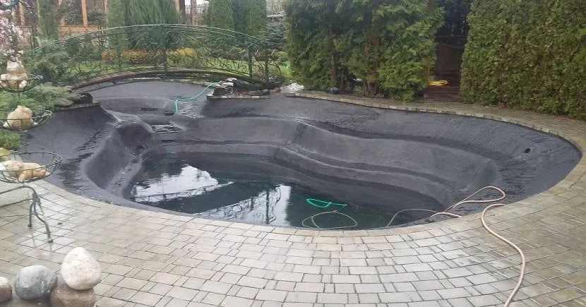 Гидроизоляция бассейна при помощи жидкой резины используется для того, чтобы защитить конструкцию от внутренних протечек, и иногда для наружной защиты от подземных вод. Ее можно наносить распылителем, который нужно подключать к компрессору, или обычной кистью.