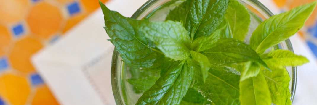 - Мята. Одна веточка с 5-6 листьями делает простую воду вкусным освежающим напитком. Стоять в тёмном месте стакан с травой должен по меньшей мере 6 часов. Ментол, содержащийся в растении, может провоцировать изжогу, поэтому данный рецепт стоит применять не чаще 1-2 раз в неделю.