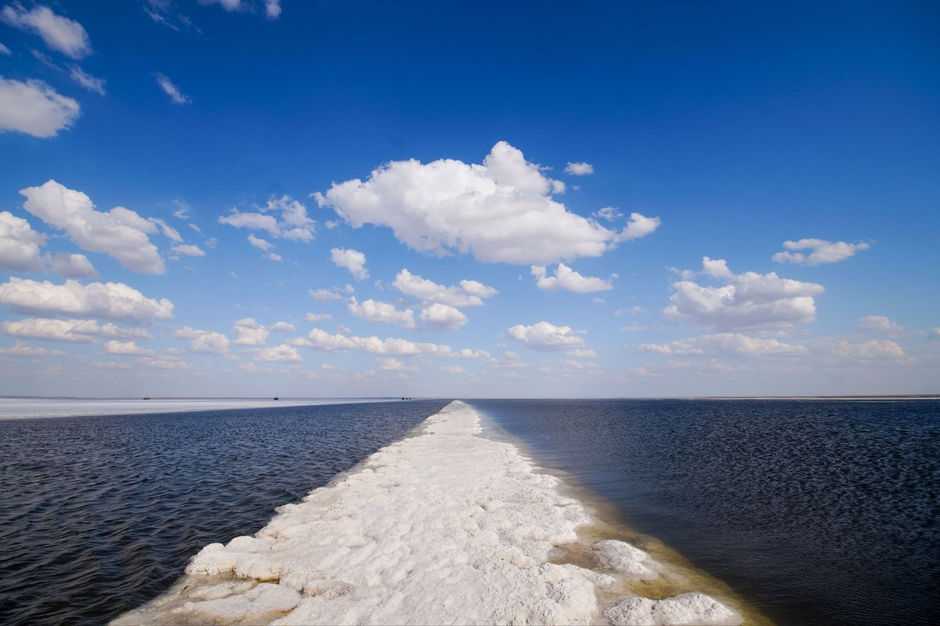 Это озеро к северу от Каспия не имеет ни одного стока, и вода здесь очень соленая. Даже если положить на поверхность железную пластину толщиной 3 мм — она не утонет из-за высокой плотности воды. А если ее так и оставить, всего за год она покроется соляными наростами толщиной 10 см. Дно представляет собой многометровые соляные отложения, так что с VIII столетия и до настоящего времени здесь добывают пищевую соль. Истощения ресурсов можно не опасаться: исследователи считают, что запасов соли хватит на тысячи лет.