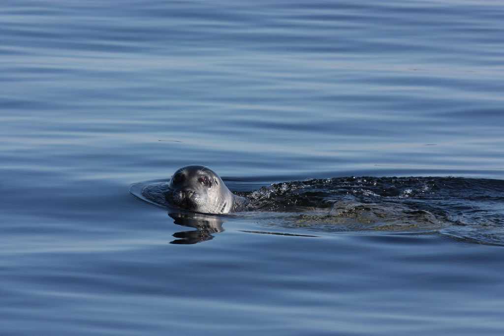 Гид предупредил, что тюлени хоть и боязливые, но весьма любопытные, поэтому кто-нибудь обязательно покажется. Так и получилось. Пока мы гуляли по скальному острову в свете закатного солнца, парочка тюленей все же появилась.