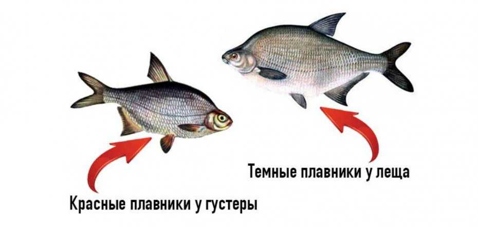 - У густеры в брюшных и грудных парных плавниках может присутствовать красноватый или желтоватый оттенок. У леща они всегда серые.